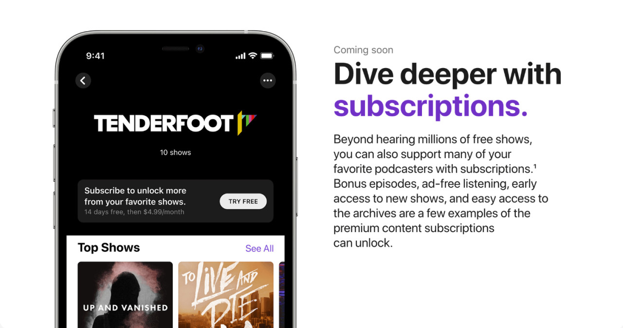 Apple Podcasts Subscriptions will be available to listeners in over 170 countries and regions in May. Pricing for each subscription is set by creators and billed monthly by default. You can offer shows with paid subscriptions, or fans can listen to free shows that come with additional benefits when they subscribe.