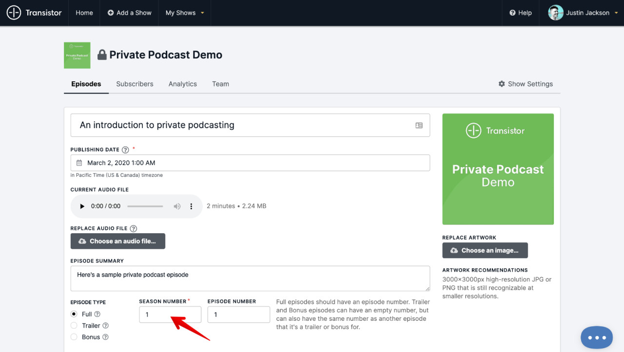 Now, you can use seasons to organize episodes on your private podcasts.