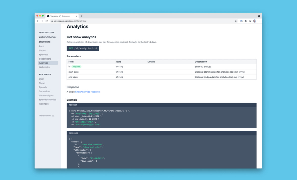 Each endpoint will (by default) return the last 14 days of downloads as an array of days and downloads per day, but you can also pass in custom startdate and enddate params for custom date ranges.