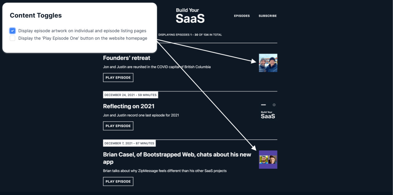 If you're uploading custom cover art for each of your podcast episodes, you can now display those images on your Transistor website in the episode list:
