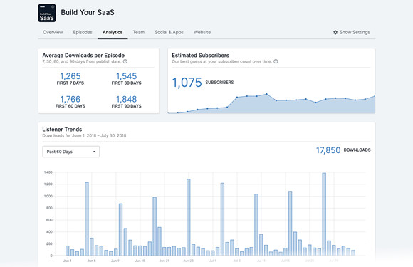 Go to "Analytics" in your Transistor account and you'll see a full array of stats: