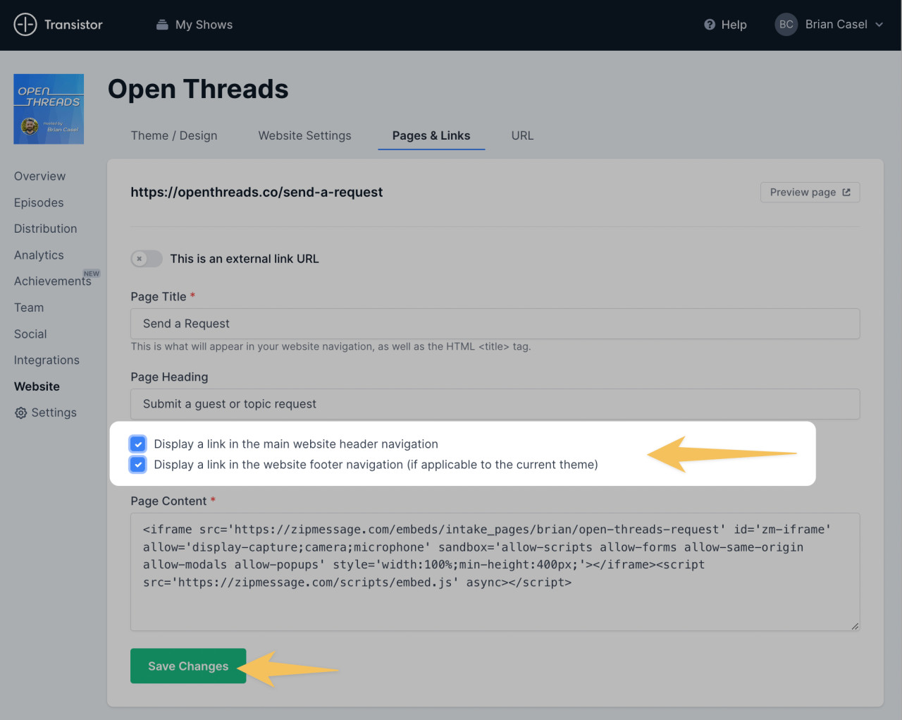 I wired up my listener feedback recorder in 2 minutes using my Transistor podcast website and my ZipMessage video intake form.