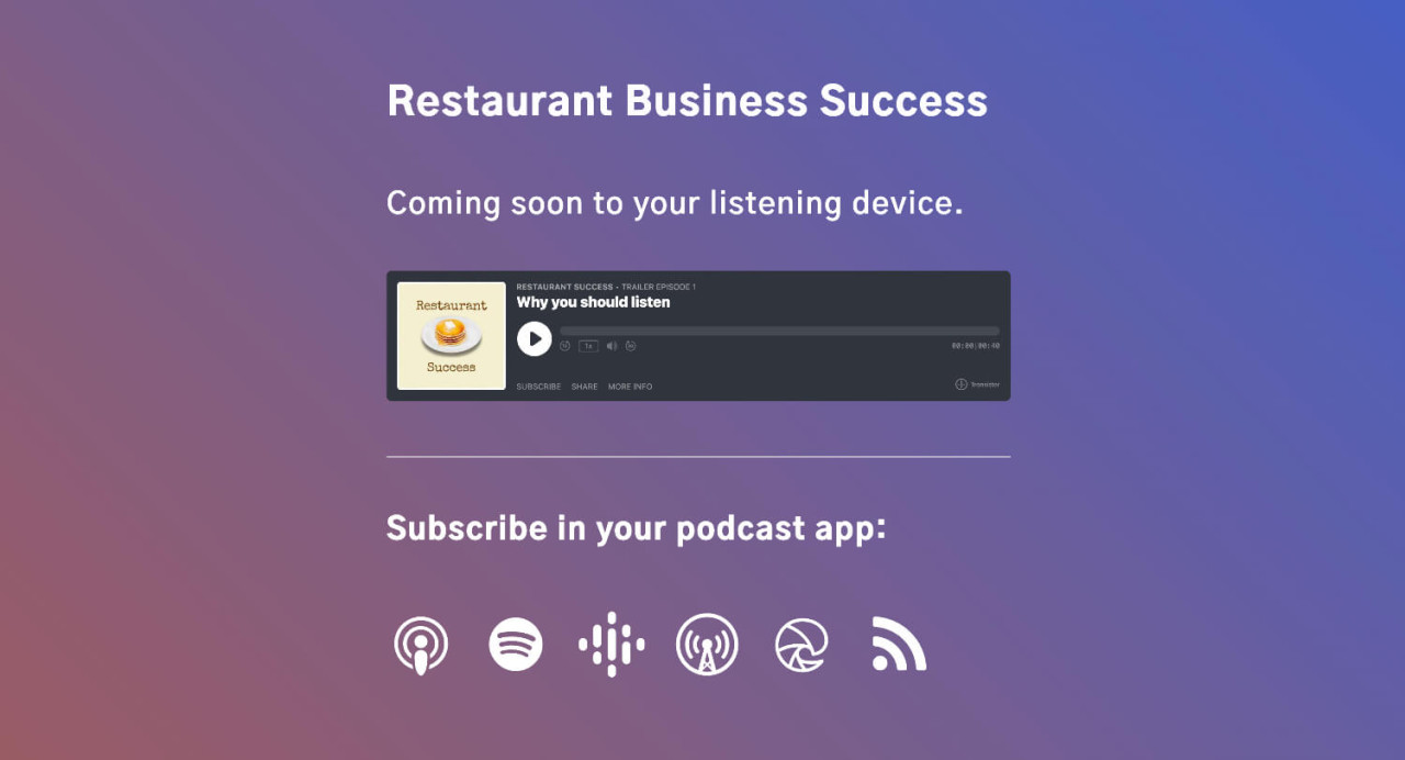 A "Subscribe" page that enables people to easily open your podcast in their favorite app.